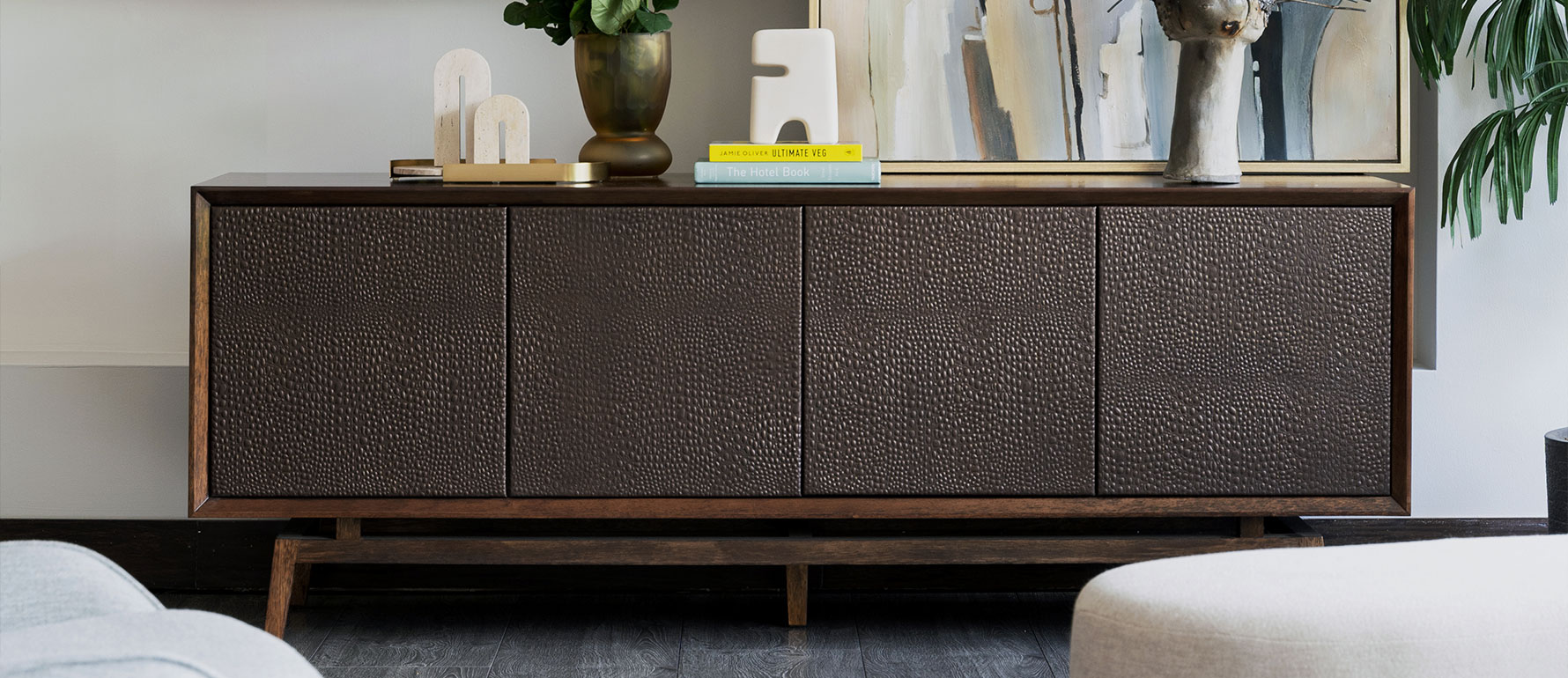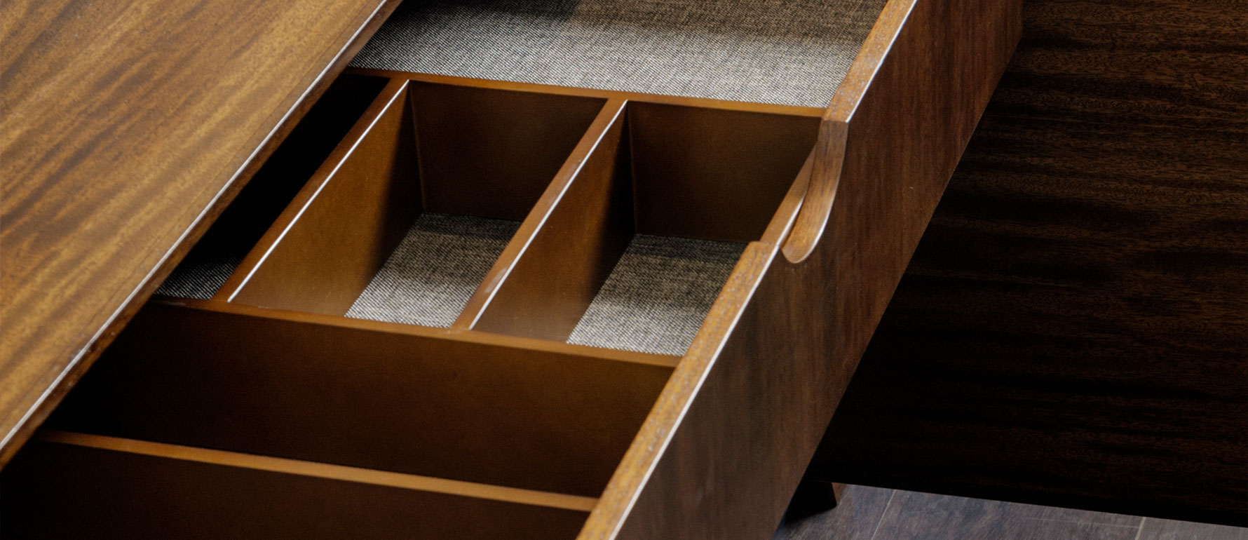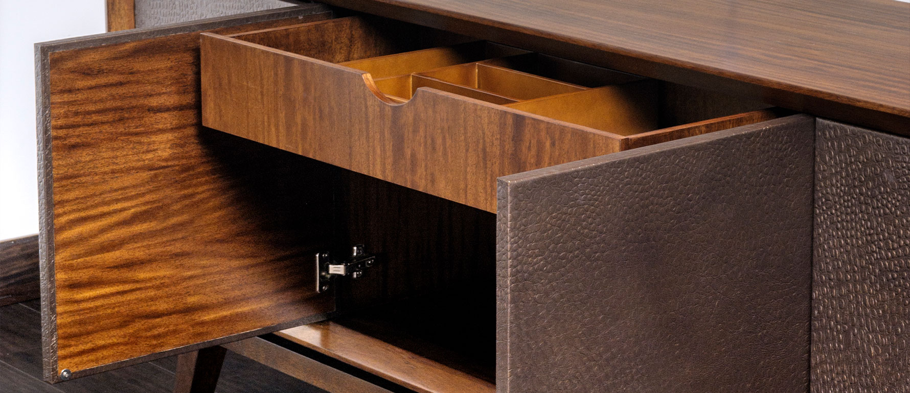 El Aparador Piu fusiona un diseño contemporáneo con una inspiración retro que define a toda la línea. Es un mueble altamente personalizable, disponible en múltiples acabados para adaptarse a cualquier proyecto de interiores: puertas en cuero, laca o madera, y un elegante cajón interior diseñado específicamente para cubiertos.