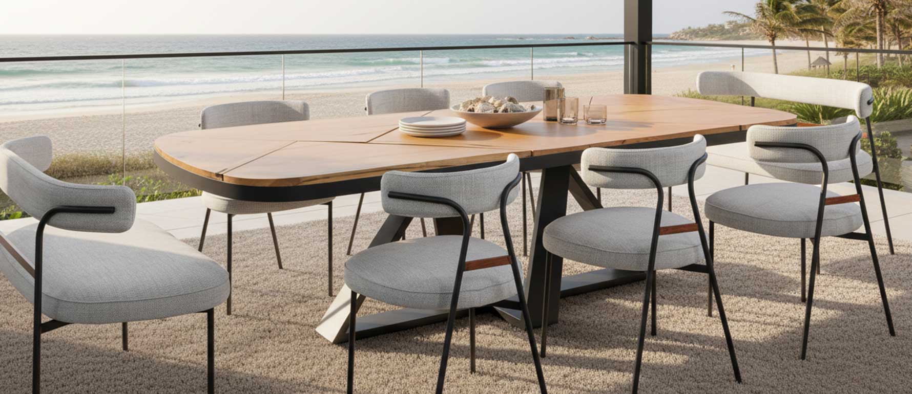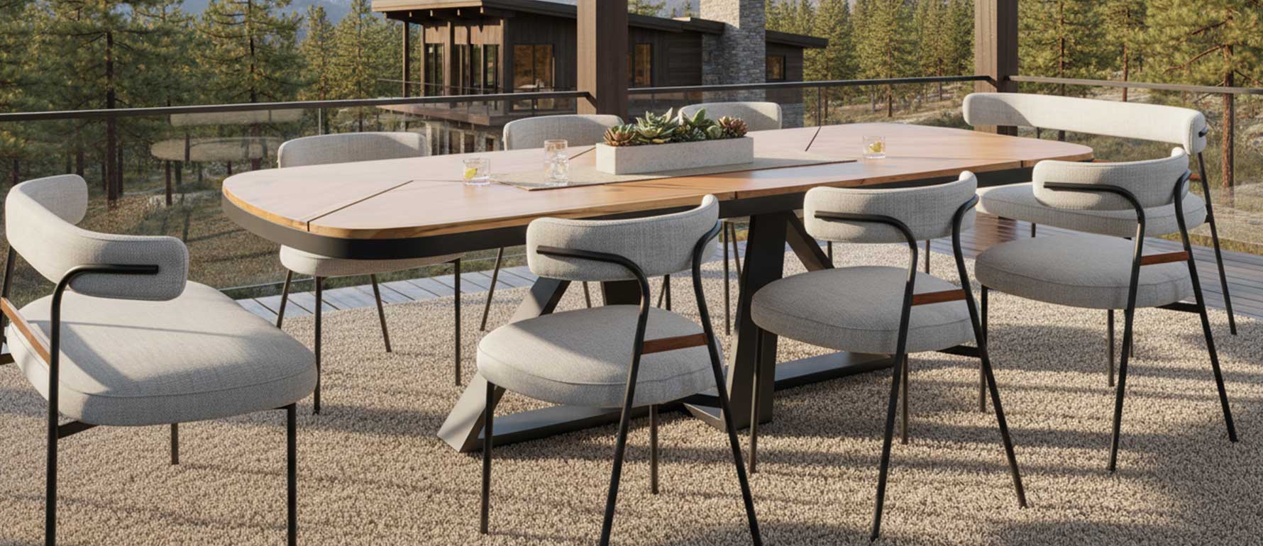 El asiento puede personalizarse con la amplia colección de textiles StudioNoa, lo que permite adaptarla a cualquier estilo exterior. Su diseño limpio, moderno y funcional la convierte en una excelente opción para complementar mesas de comedor exteriores o áreas sociales.
