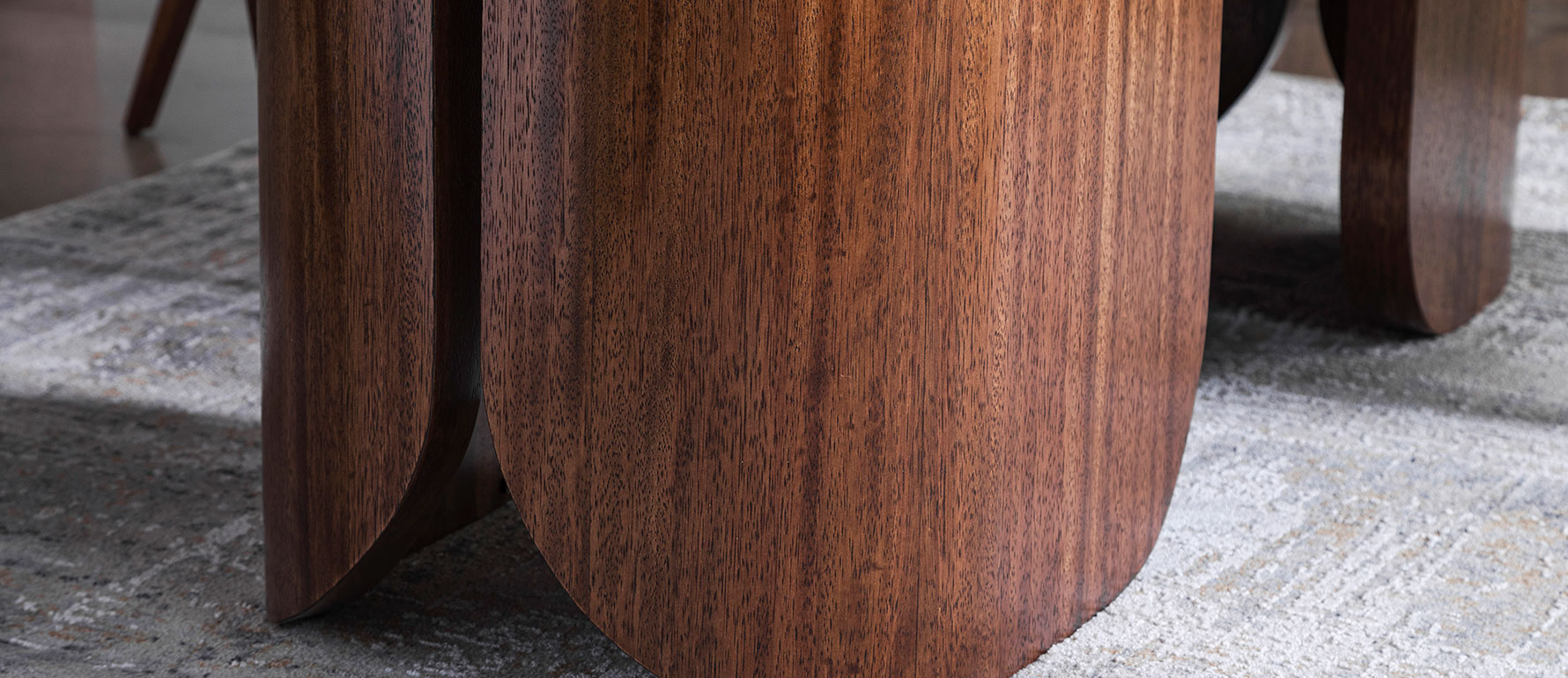 La Mesa de comedor Aston, diseñada y fabricada por StudioNoa en Ecuador, combina modernidad, elegancia y funcionalidad. Destacan sus patas curvas con apertura única, que aportan un gesto escultórico y distintivo al diseño.