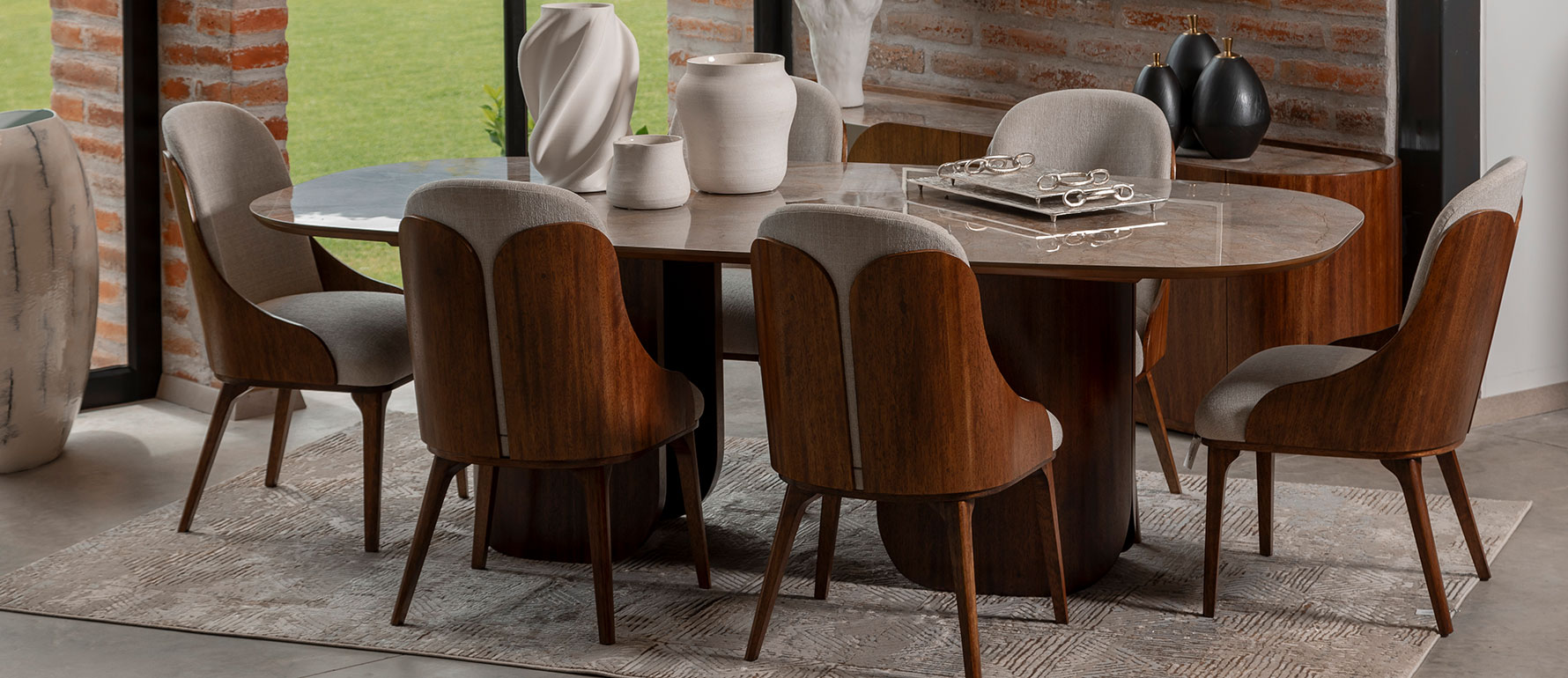 Es perfecta para quienes desean un comedor amplio, sofisticado y contemporáneo que se convierta en el corazón social de la casa, elevando el diseño interior con un mueble protagonista y atemporal.