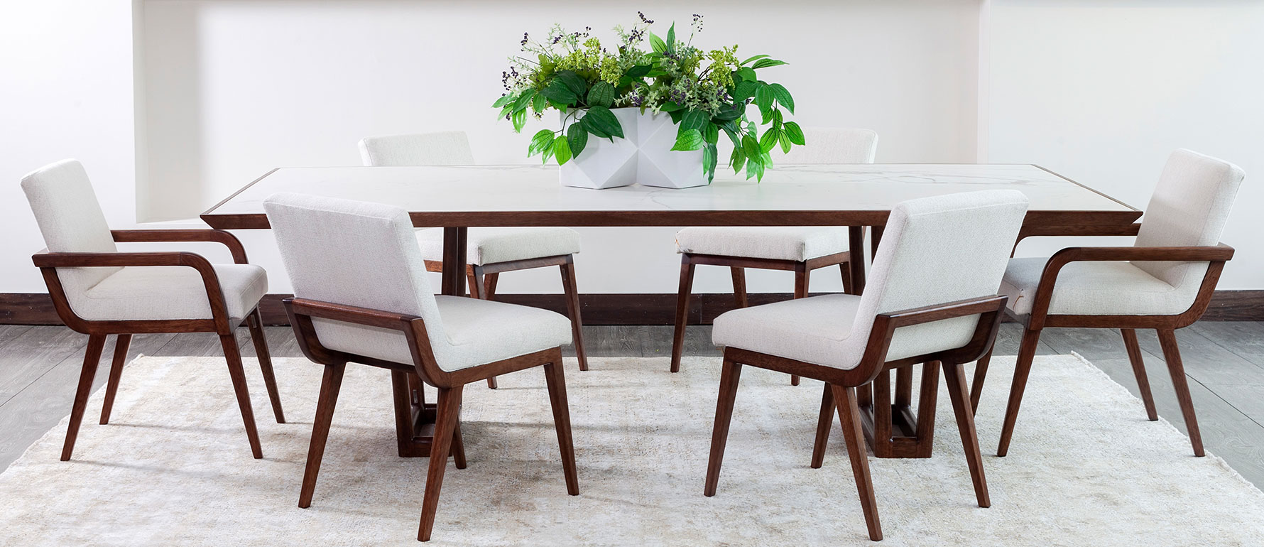 La versión en madera de la Mesa de comedor Metro, diseñada y fabricada por StudioNoa en Ecuador, ofrece una estética cálida y sofisticada gracias a su base de madera maciza y su cubierta en porcelanato de alta calidad. La combinación de texturas crea un equilibrio refinado entre lo natural y lo contemporáneo, posicionándola como un elemento protagonista en comedores modernos, residencias de alto nivel y proyectos de interiorismo en Quito y Guayaquil.