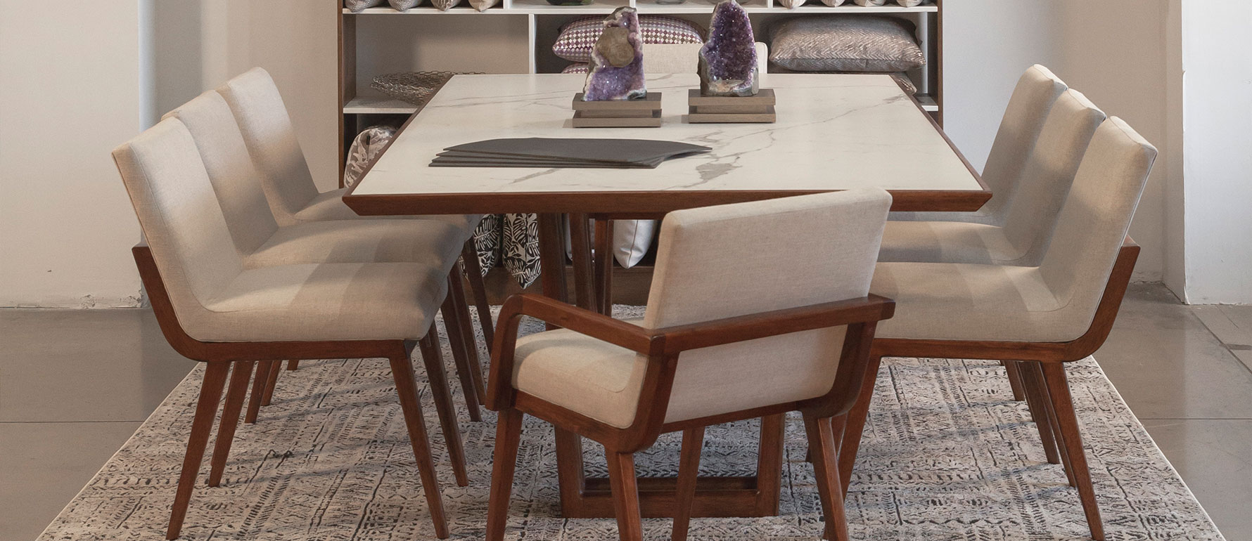 Esta mesa es totalmente personalizable: elegimos junto a ti el tono de madera, el acabado del porcelanato y las dimensiones ideales para tu espacio. Perfecta para quienes buscan muebles exclusivos, diseño a medida y la experiencia de asesoría personalizada de StudioNoa en el proceso de diseño de interiores.