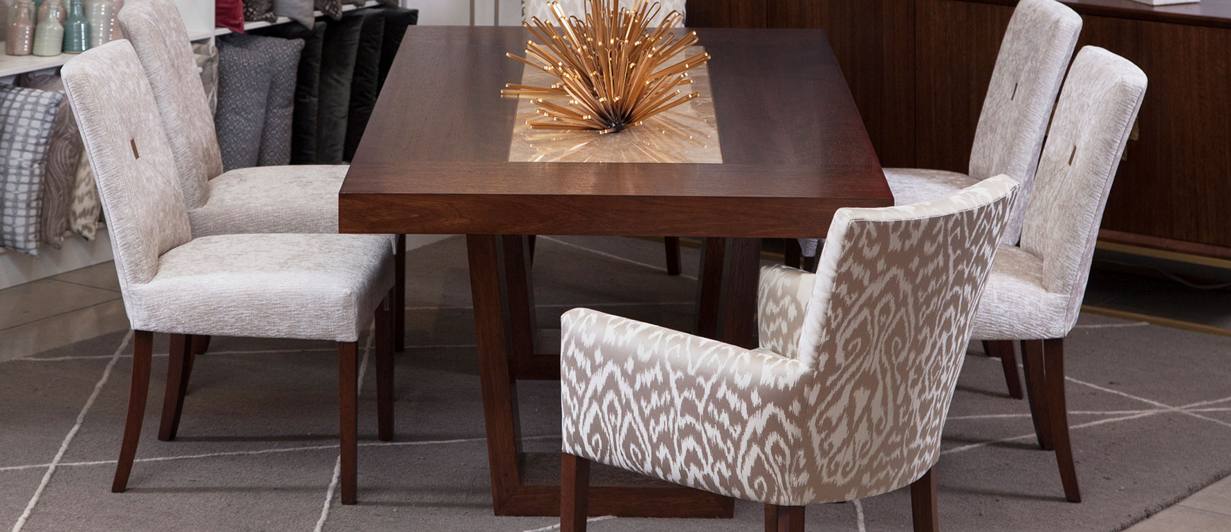 La Mesa de comedor Musa es una pieza que combina elegancia y funcionalidad, diseñada para quienes buscan muebles de lujo en Quito y un estilo sofisticado para sus espacios. Su distintiva franja de mármol central aporta un toque escultórico y refinado, realzando la estética de cualquier comedor premium.
