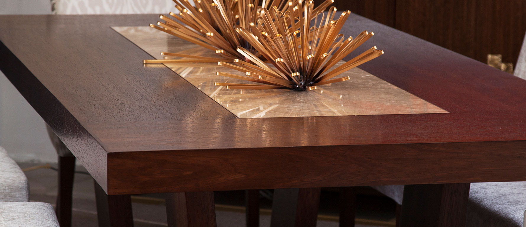 Este diseño puede personalizarse completamente, tanto en la selección del mármol como en la tonalidad y acabado de la madera, convirtiendo cada mesa en una pieza única y a medida. Fabricada con madera premium y materiales de alta calidad, la Musa ofrece resistencia, durabilidad y una presencia imponente que se convierte en el punto focal del ambiente.