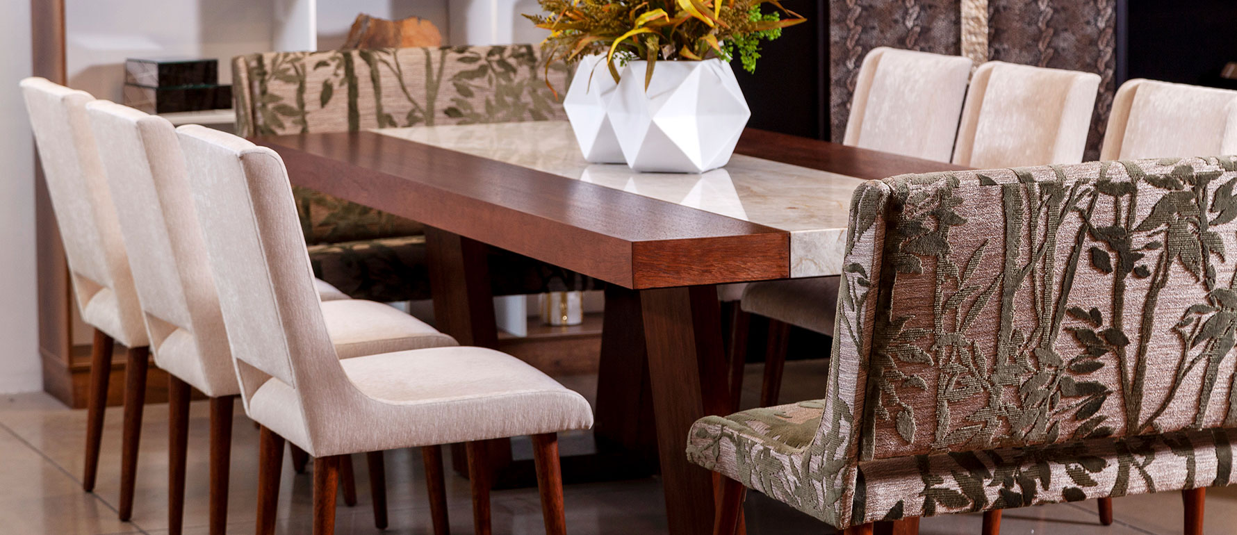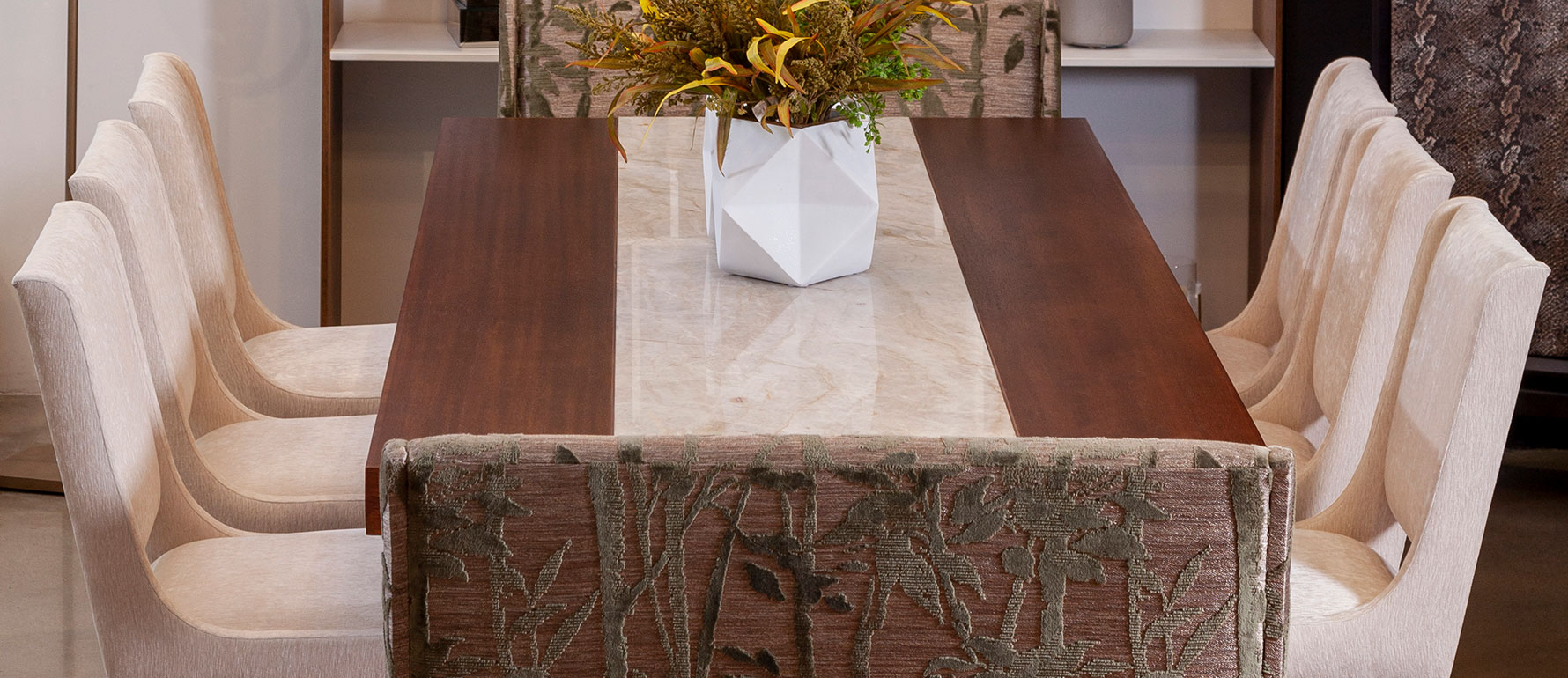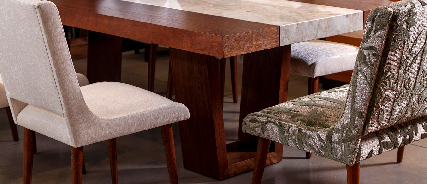 La mesa Musa destaca por su refinada combinación de madera y mármol, integrando una franja central personalizable que convierte esta pieza en un símbolo de sofisticación contemporánea. Fabricada en Ecuador, puede personalizarse en tipo de mármol y acabado de la madera.