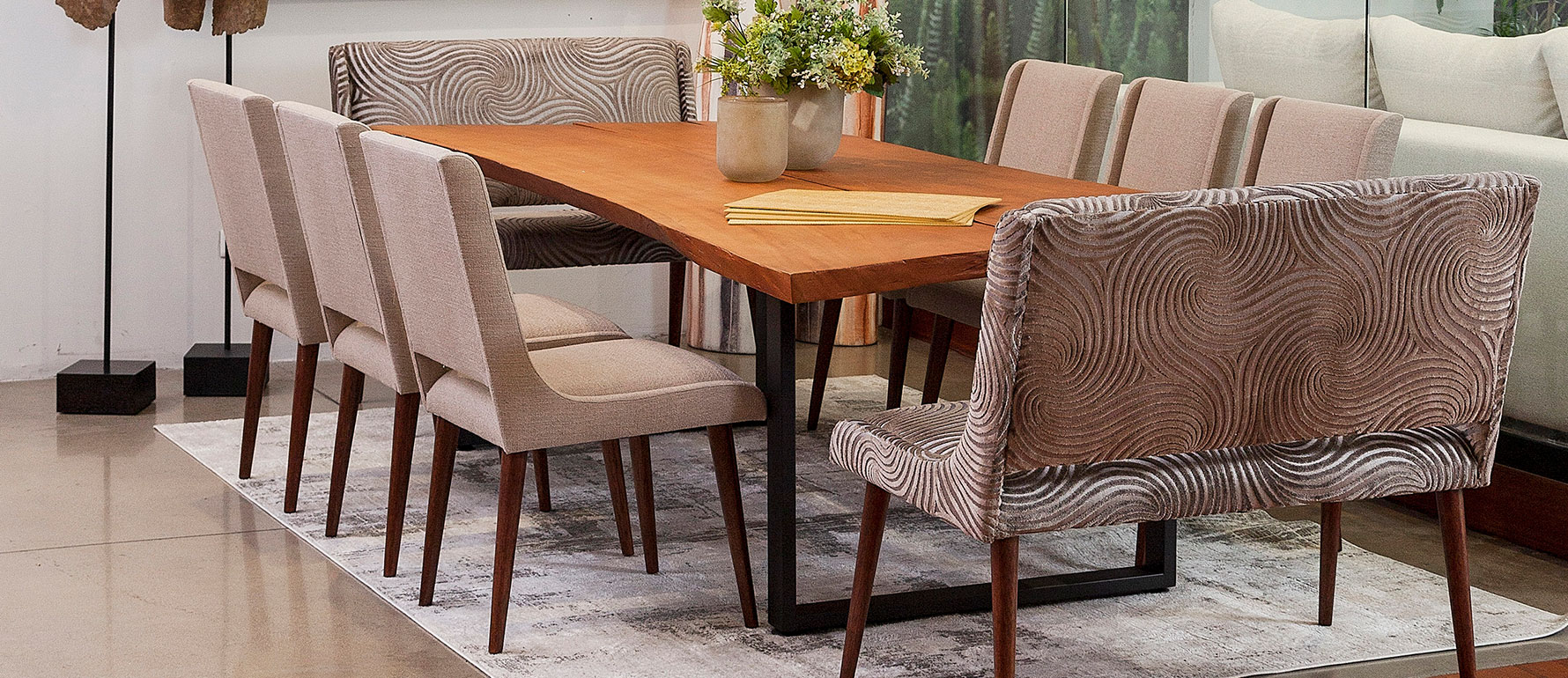 Fabricada en Ecuador con materiales duraderos de alta calidad, esta mesa es ideal para quienes buscan autenticidad y carácter en su comedor. Con capacidad para 8 a 10 personas.