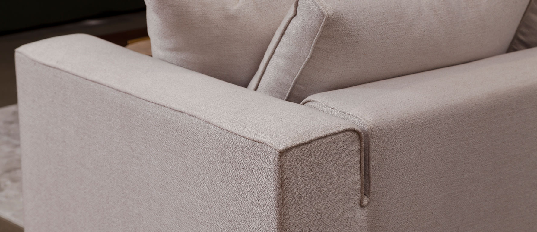 Su estructura sólida ofrece comodidad y estabilidad, mientras que la tapicería personalizable entre más de 200 telas premium permite adaptar el sofá a tu estilo y proyecto.