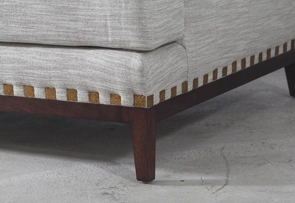 Poltrona elegante de generosas proporciones con cojines acolchados y detalles de estoperol importado. Ideal para una sala principal.