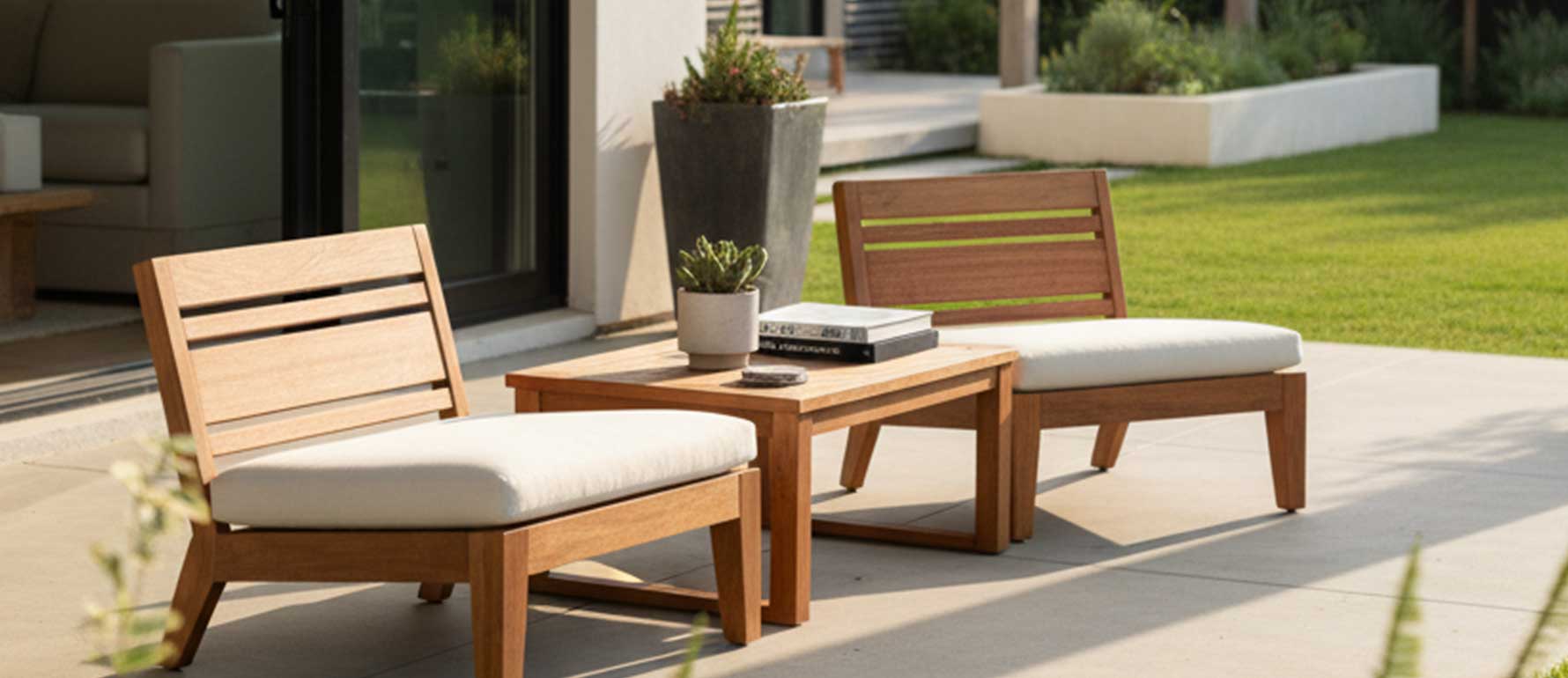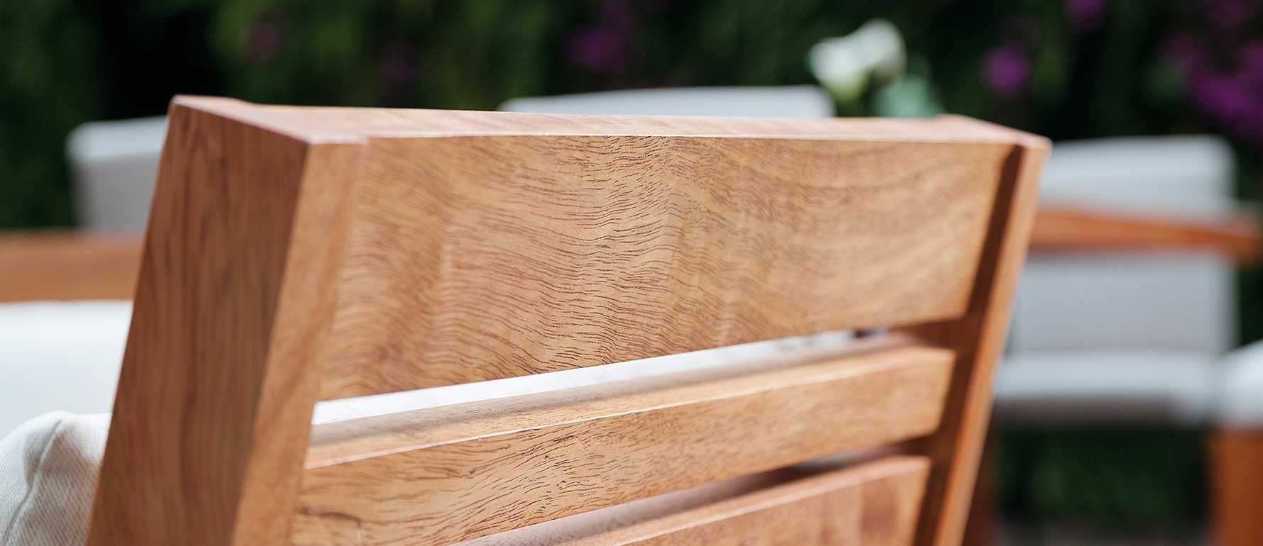 La Poltrona Punta del Este combina la calidez de la madera sieke 100% natural con un diseño moderno de líneas rectas y estructura marcada. Es ideal para porches techados, ya que la madera sieke ofrece gran resistencia y estabilidad en ambientes exteriores cubiertos.