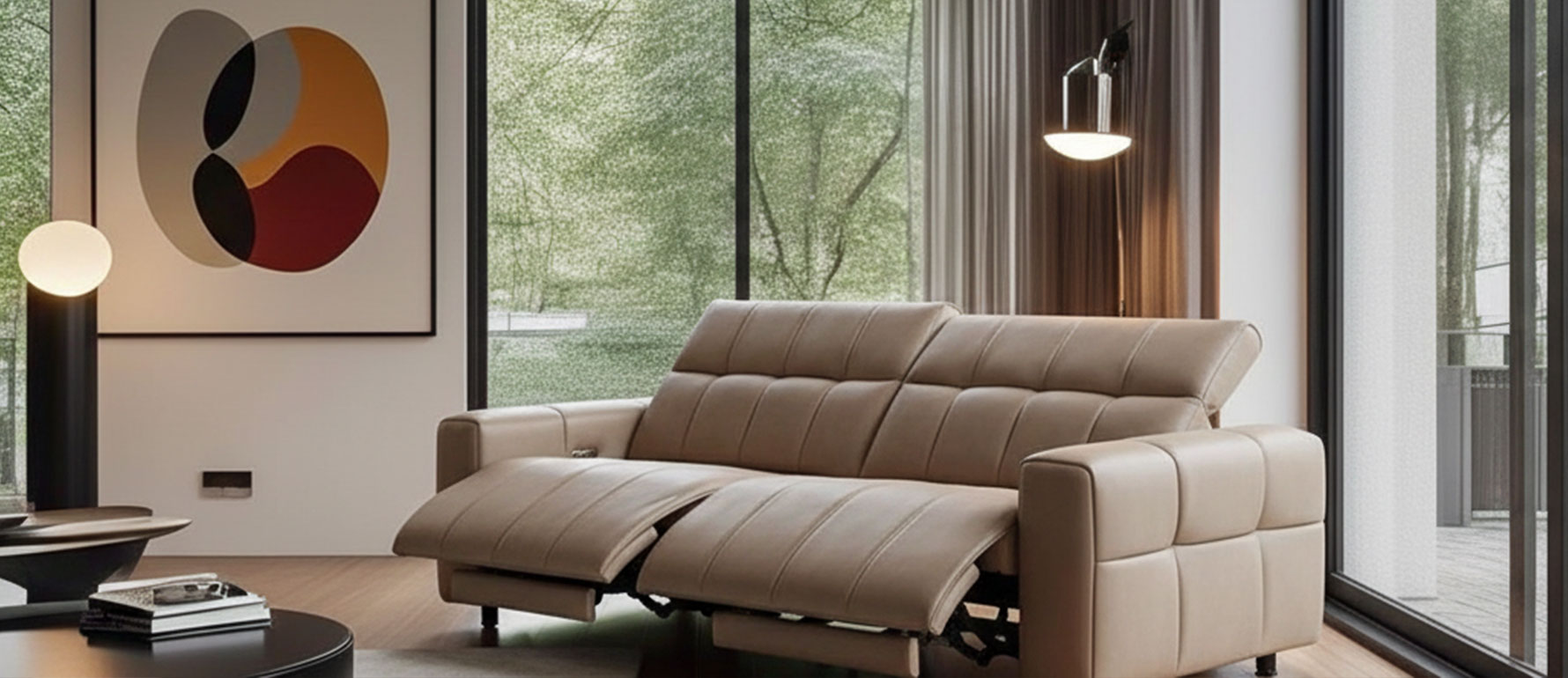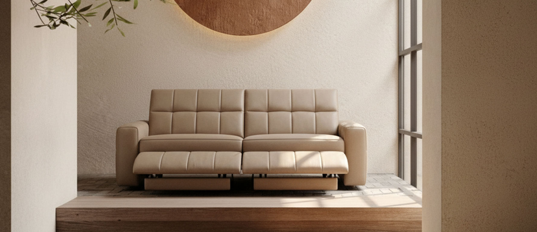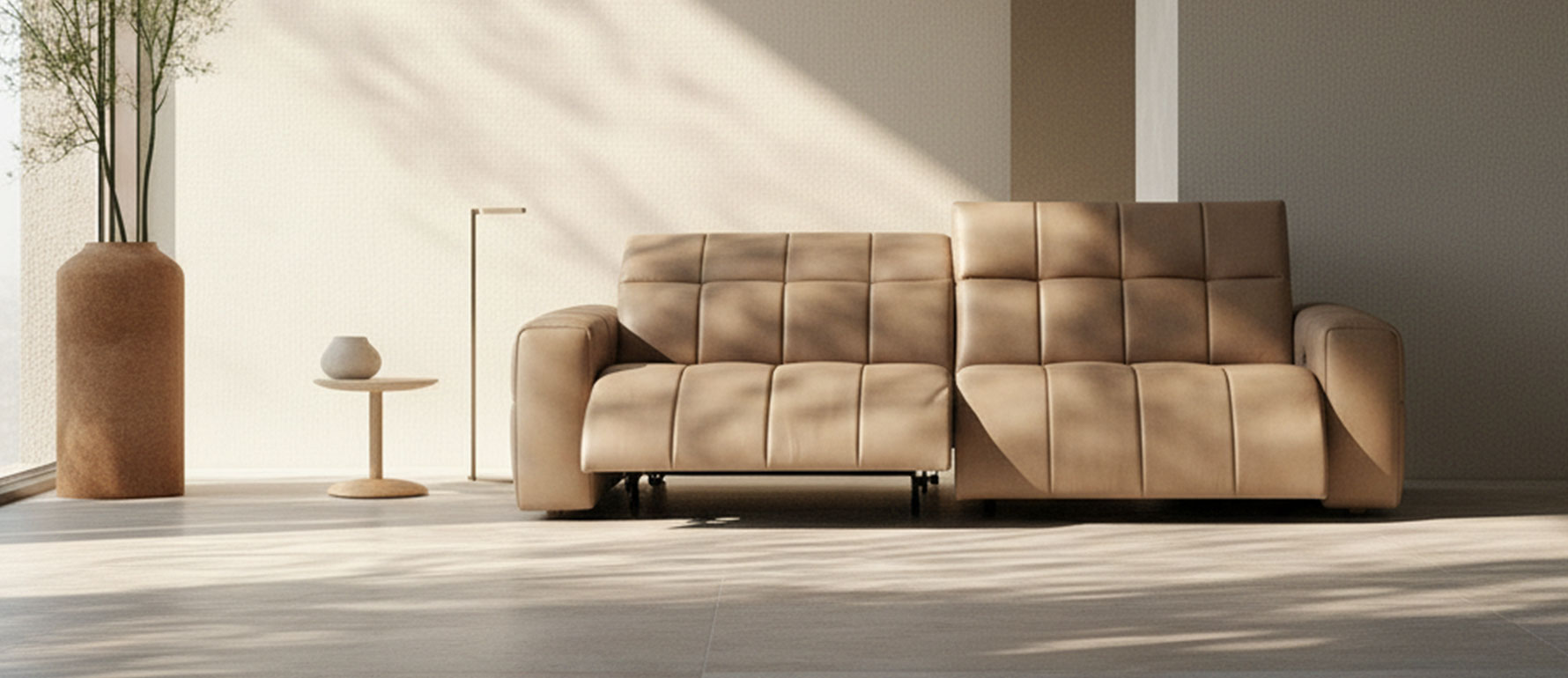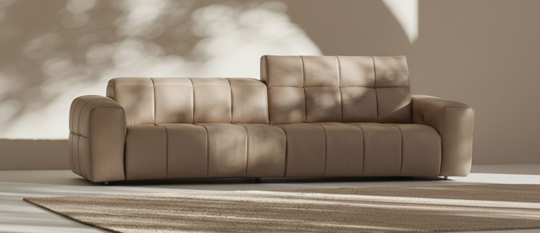 Tapizado en cuero 100% natural color beige, combina suavidad, tecnología y diseño contemporáneo. Su estética limpia lo hace perfecto para salas modernas que buscan funcionalidad sin sacrificar elegancia.