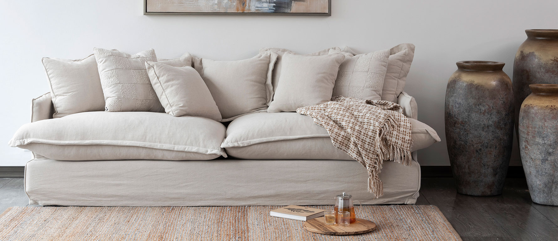 El sofá Cloud de StudioNoa es una pieza premium importada desde Japón, diseñado bajo los principios del confort Hygge. Confeccionado en lino–algodón de alta calidad y relleno hipoalergénico, ofrece una suavidad envolvente y una sensación acolchada que invita al descanso profundo. Incluye sleep cover/funda removible, ideal para limpieza en seco y mantenimiento sencillo.