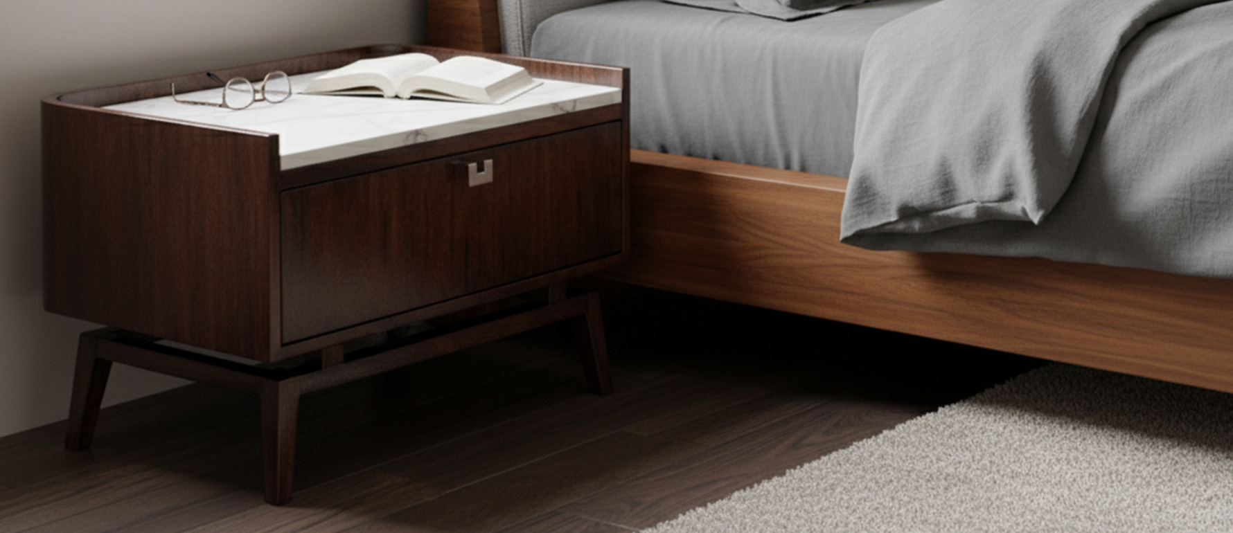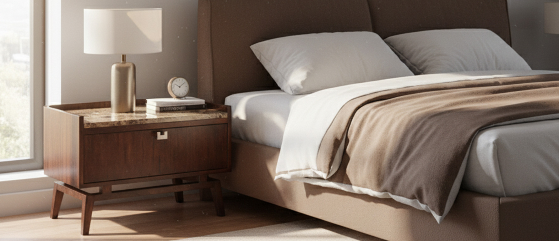 El Velador Piu combina la calidez de la madera con la sofisticación del mesón de mármol, realzando sus líneas elegantes y atemporales. Su diseño contemporáneo con inspiración retro lo convierte en un complemento ideal para dormitorios modernos y sofisticados.