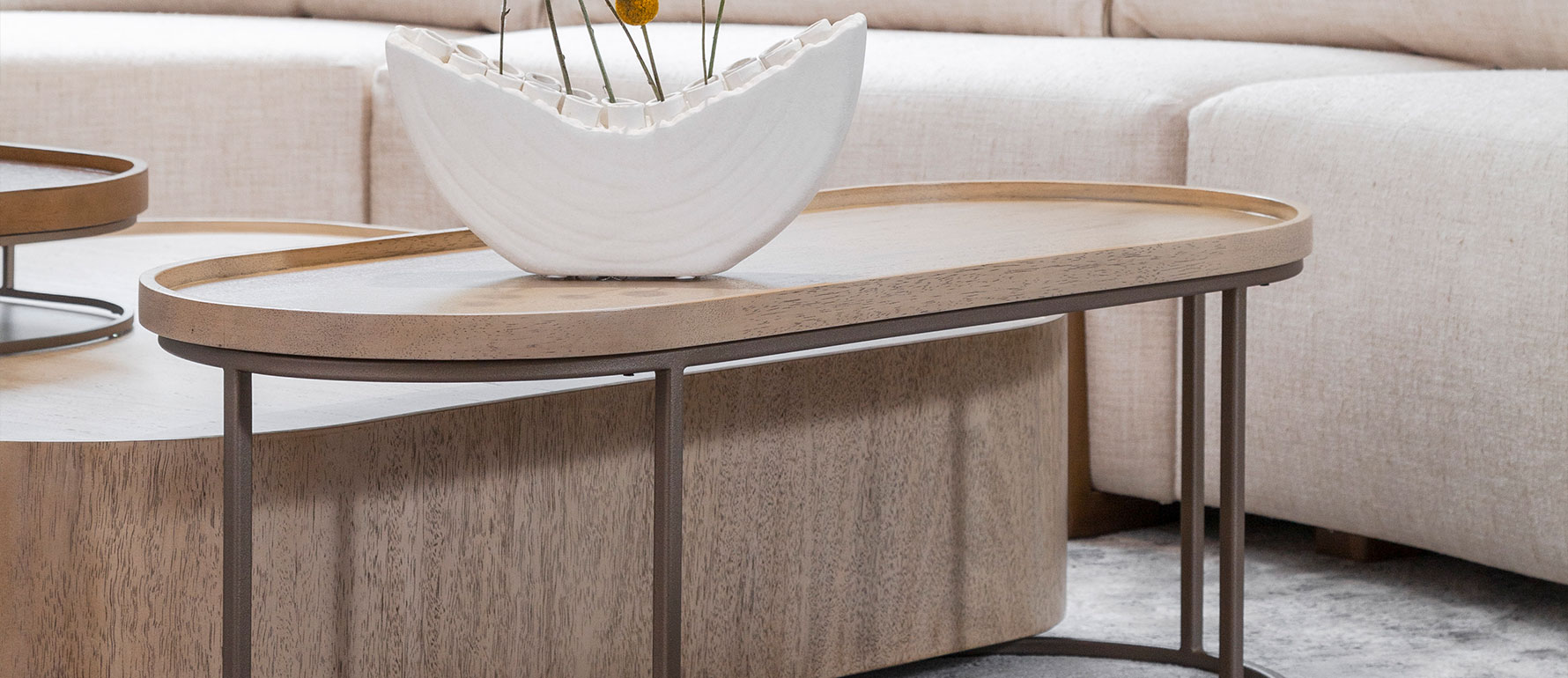 Esta mesa complementa perfectamente la mesa de centro Japandi cuadrada, formando un conjunto armonioso que realza el diseño de tu sala y aporta versatilidad en la disposición de los muebles.